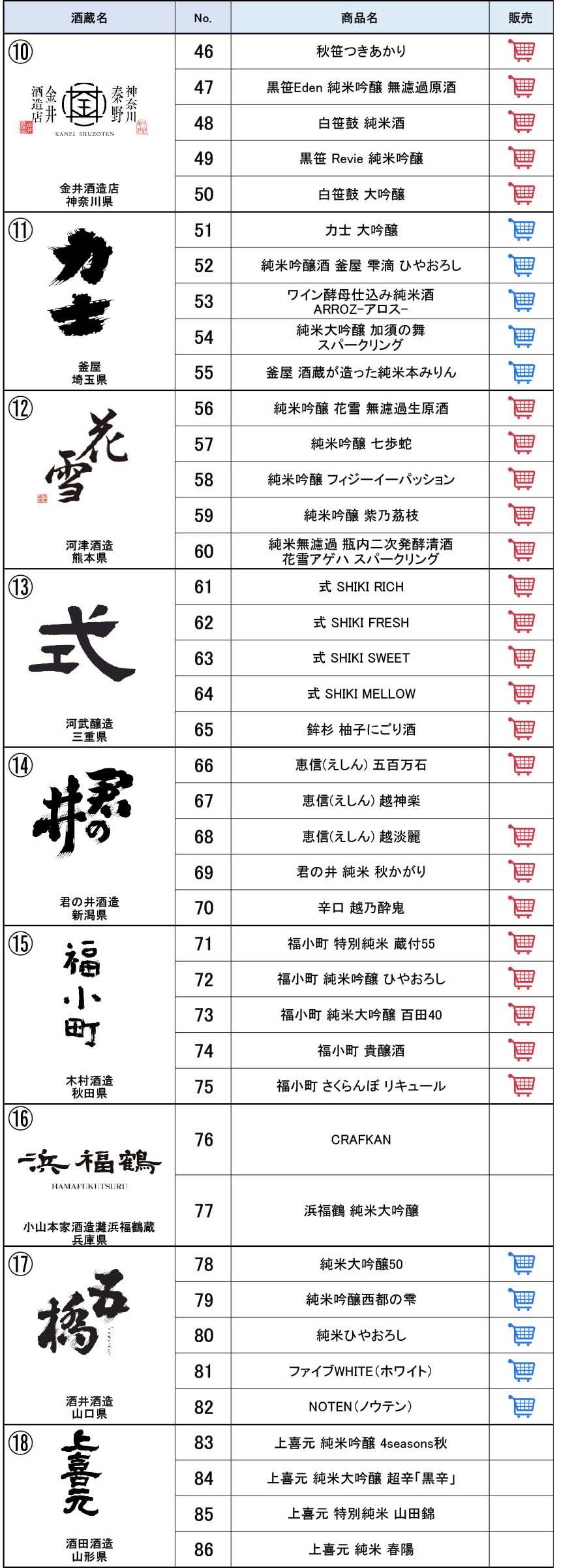 「初心者でも飲みやすいお酒は?」「お刺身に合う日本酒を知りたい」など、気になることを自由に聞いてみてください。開催前までに聞いておけば、当日は作戦通りにお酒を楽しめること間違いなし!下記のリストには載っていない、会場で特別に楽しめるお酒の情報も教えてくれます